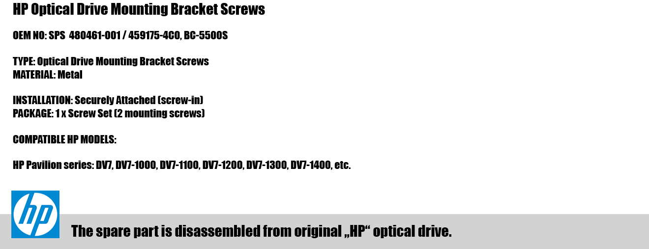 1.85 x 2.90 mm – HP laikiklio varžtai (SPS-480461-001)