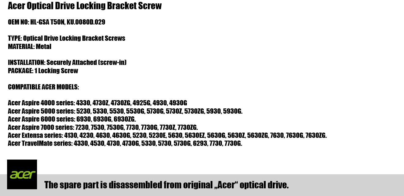 1.93 x 3.15 mm – Acer fiksatoriaus varžtas (KU.0080D.029)