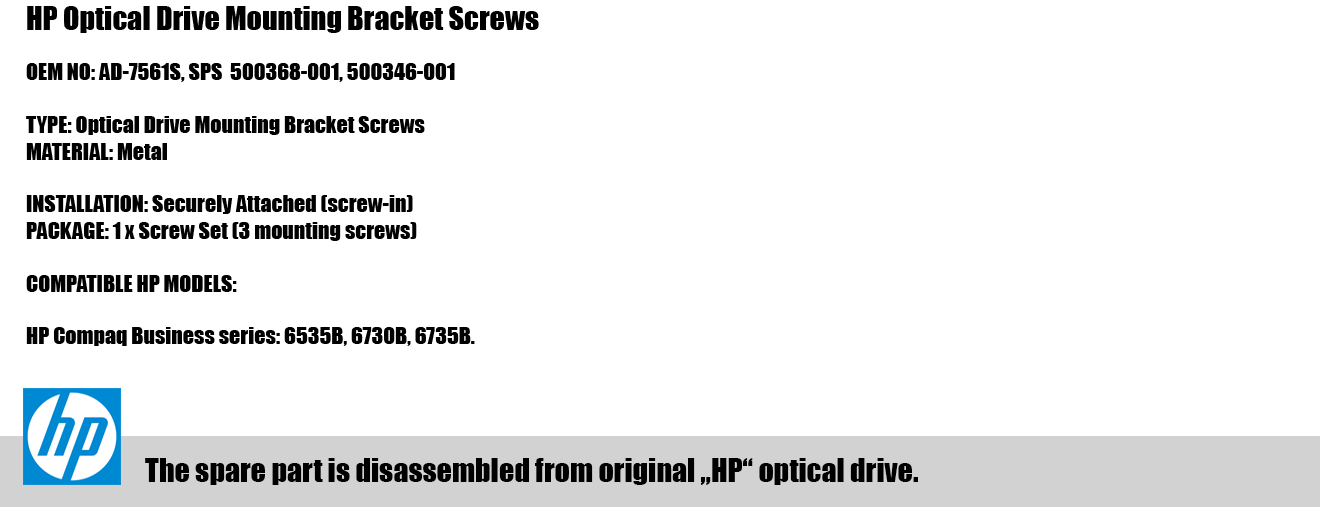 Šiuos „HP“ gamintojo tvirtinimo varžtus galima pritaikyti ir kitiems elektronikos įrenginiams.