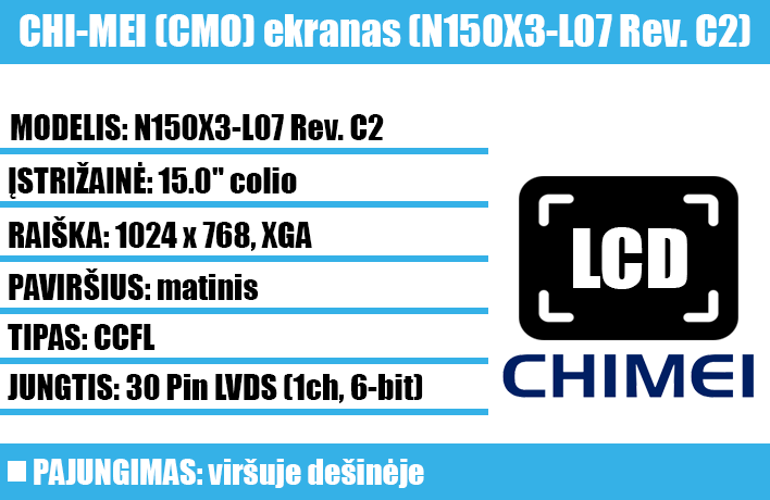 EKRANO MODELIS: N150X3-L07 Rev. C2, N150X3-L01-X | FUJITSU OEM NUMERIS: CP220640-01