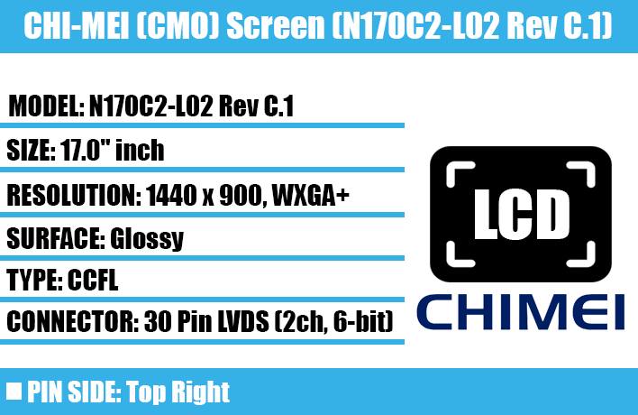 | Chi-Mei (CMO): | N170C1-L01 | N170C2-L01 | N170C2-L02. |