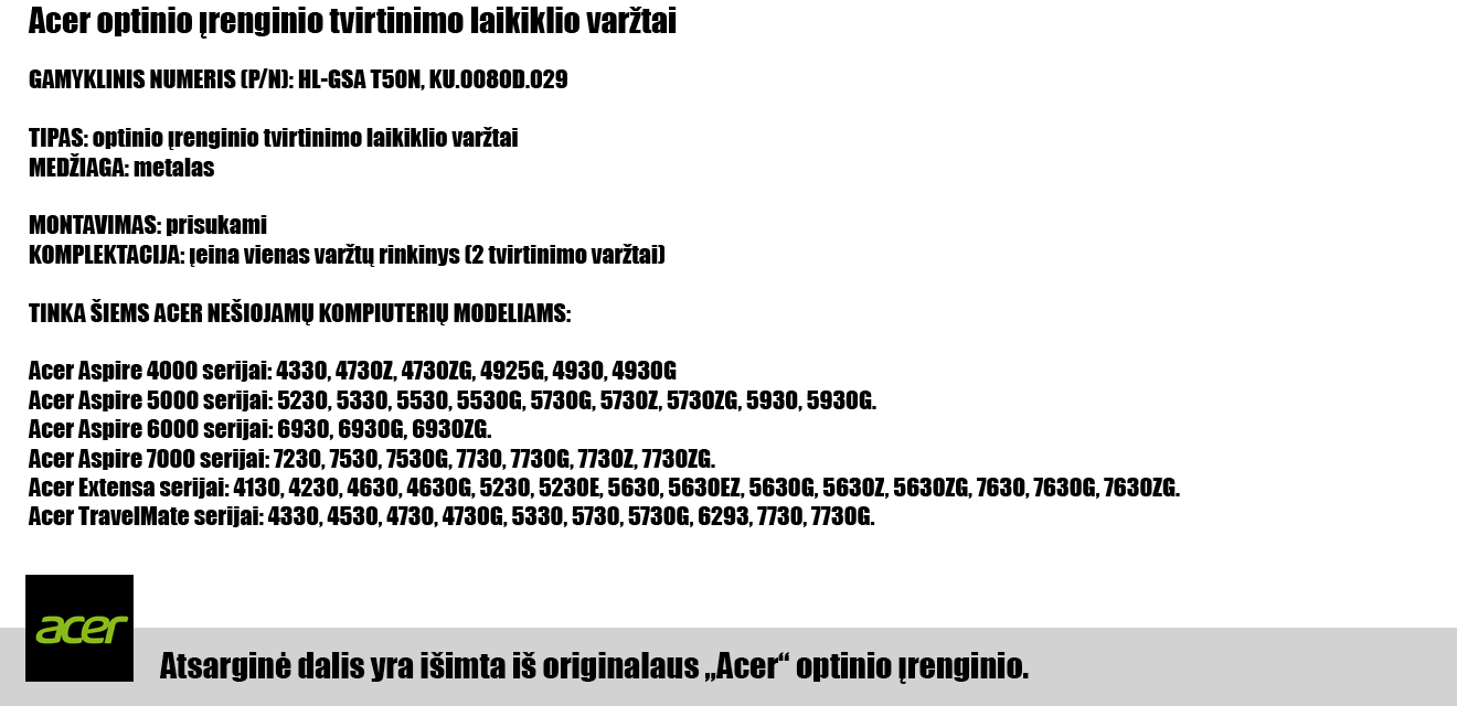 1.95 x 3.72 mm – Acer laikiklio varžtai (KU.0080D.029)