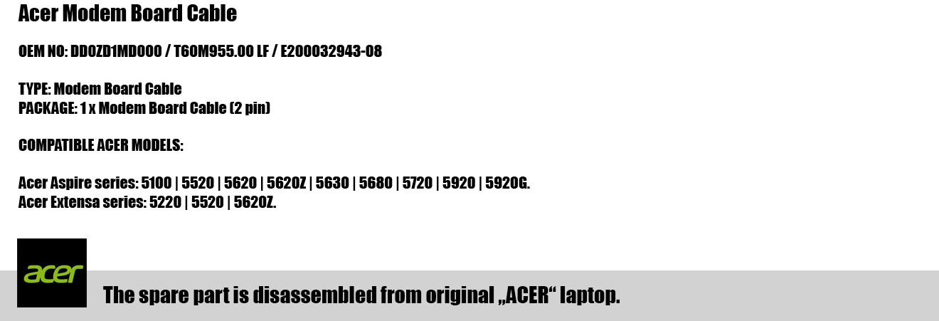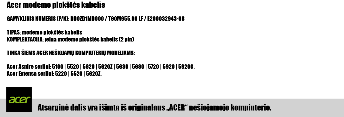 Acer Aspire modemo plokštės kabelis (T60M955.00 LF)