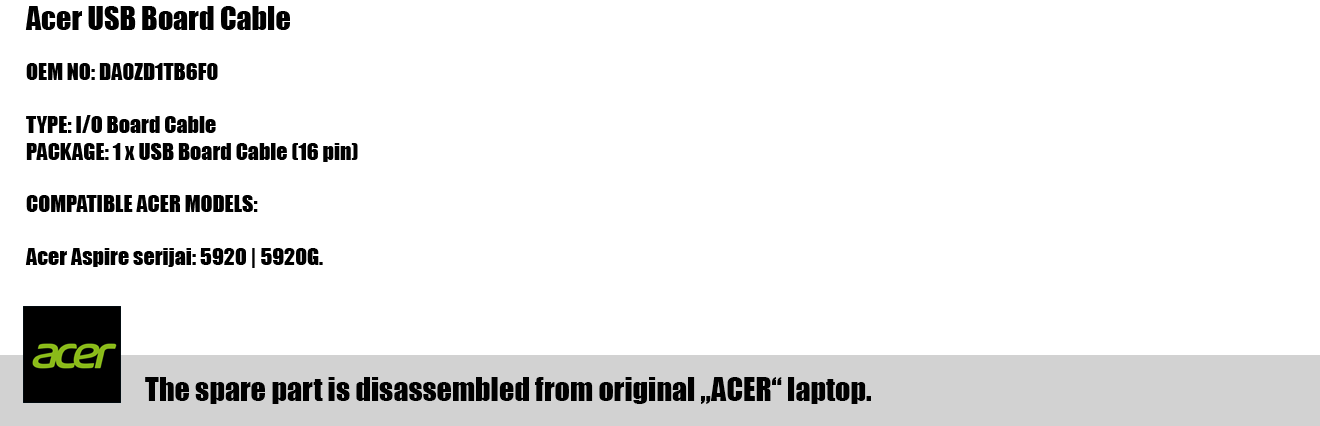 Acer USB jungties plokštės kabelis, 16 pin (DA0ZD1TB6F0)