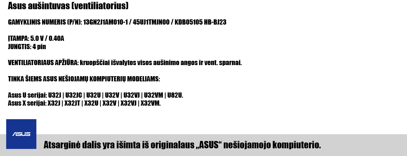 Visos parduodamos nešiojamųjų kompiuterių atsarginės dalys nėra mūsų pagamintos. Gamintojų gaminių pavadinimai, logotipai, prekiniai ženklai yra tų atitinkamų savininkų nuosavybė!!! Pateikta informacija prekių aprašymuose ar bet kokios kitos nuorodos apie prekinius ženklus yra skirta tik indetifikuoti dalis