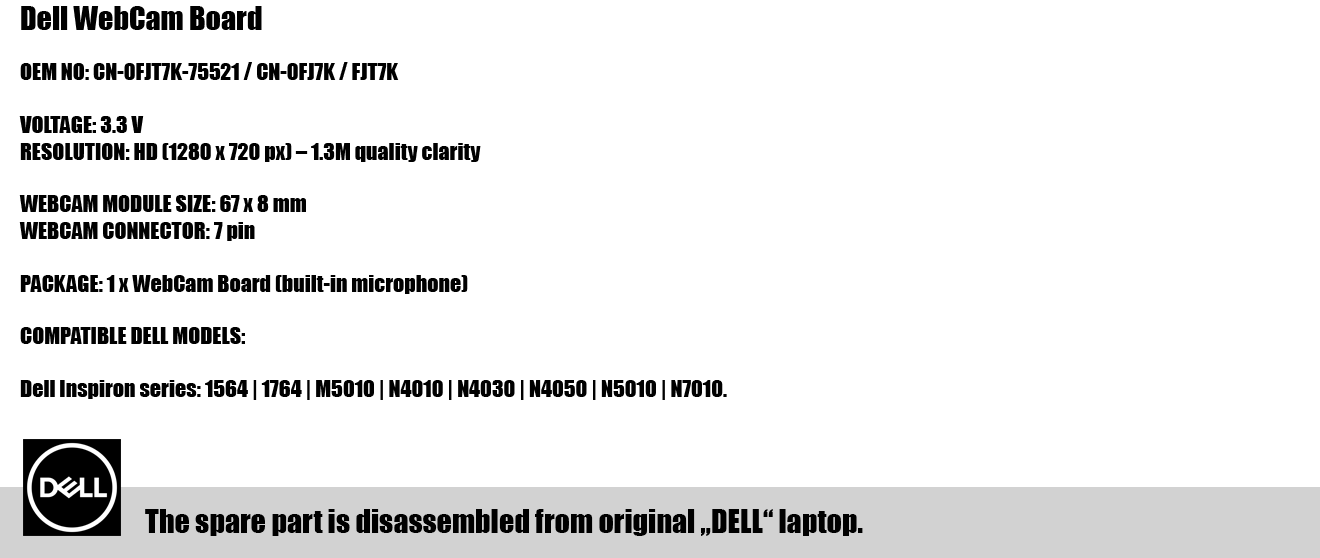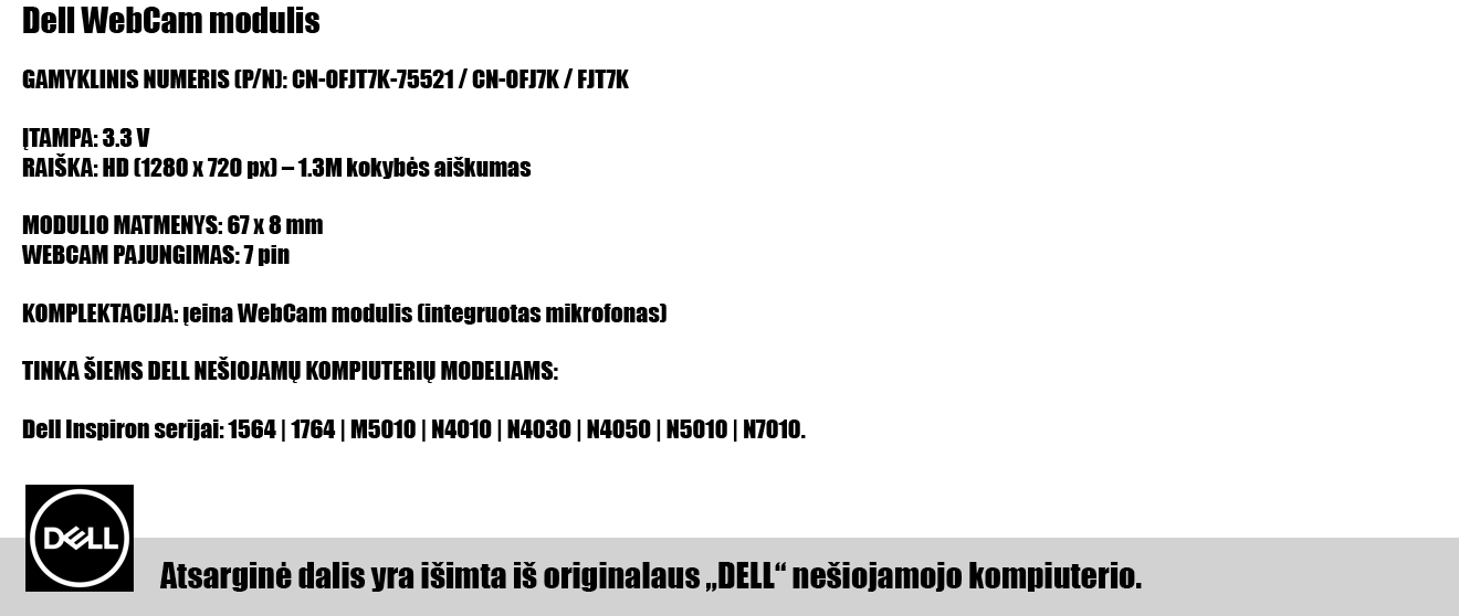 Dell WebCam modulis, 7 pin HD 720p (CN-0FJT7K)