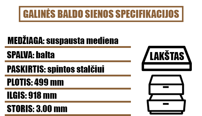 Komplekte yra 1 galinė baldo siena (stalčiui). Medienos lakštas buvo išvalytas ir kruopščiai apžiūrėtas.