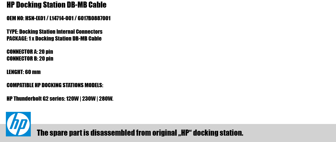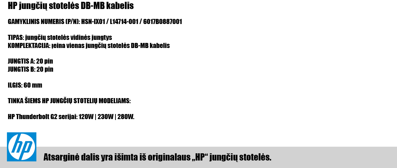 HP šakotuvo DB-MB kabelis, 20 pin | 20 pin (HSN-IX01)