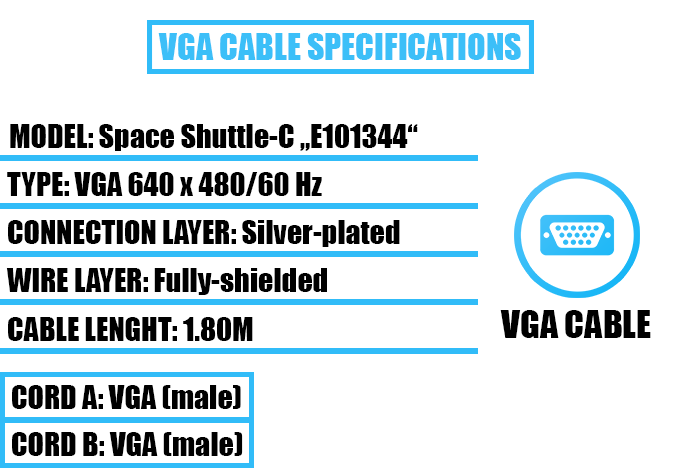 KOMPLEKTO SUDĖTIS: įeina 1 VGA standartinis kabelis.